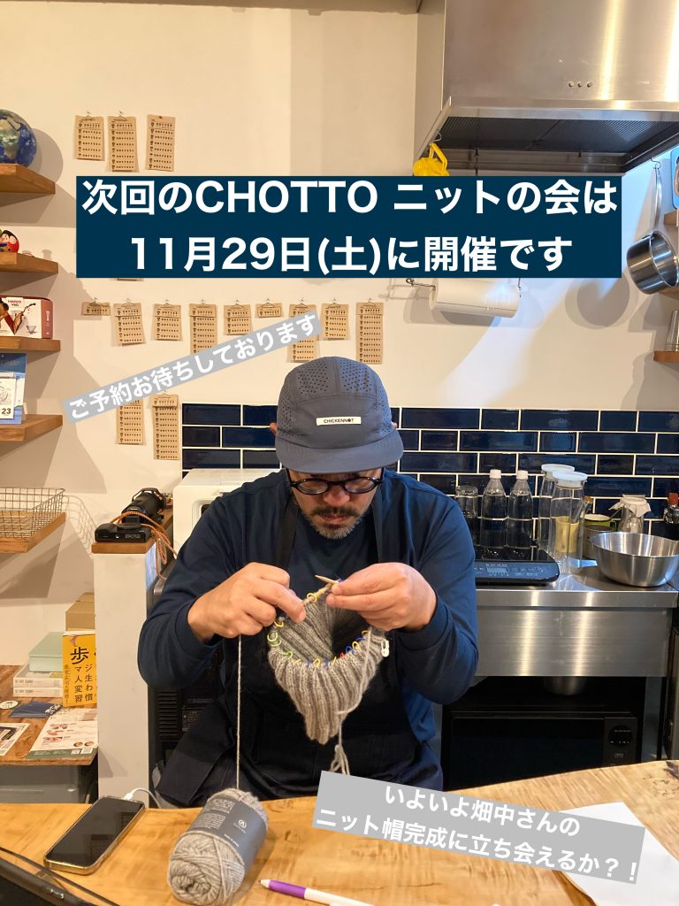 大山崎のCHOTTO COFFEEさんにて開催の編み物レッスンです。