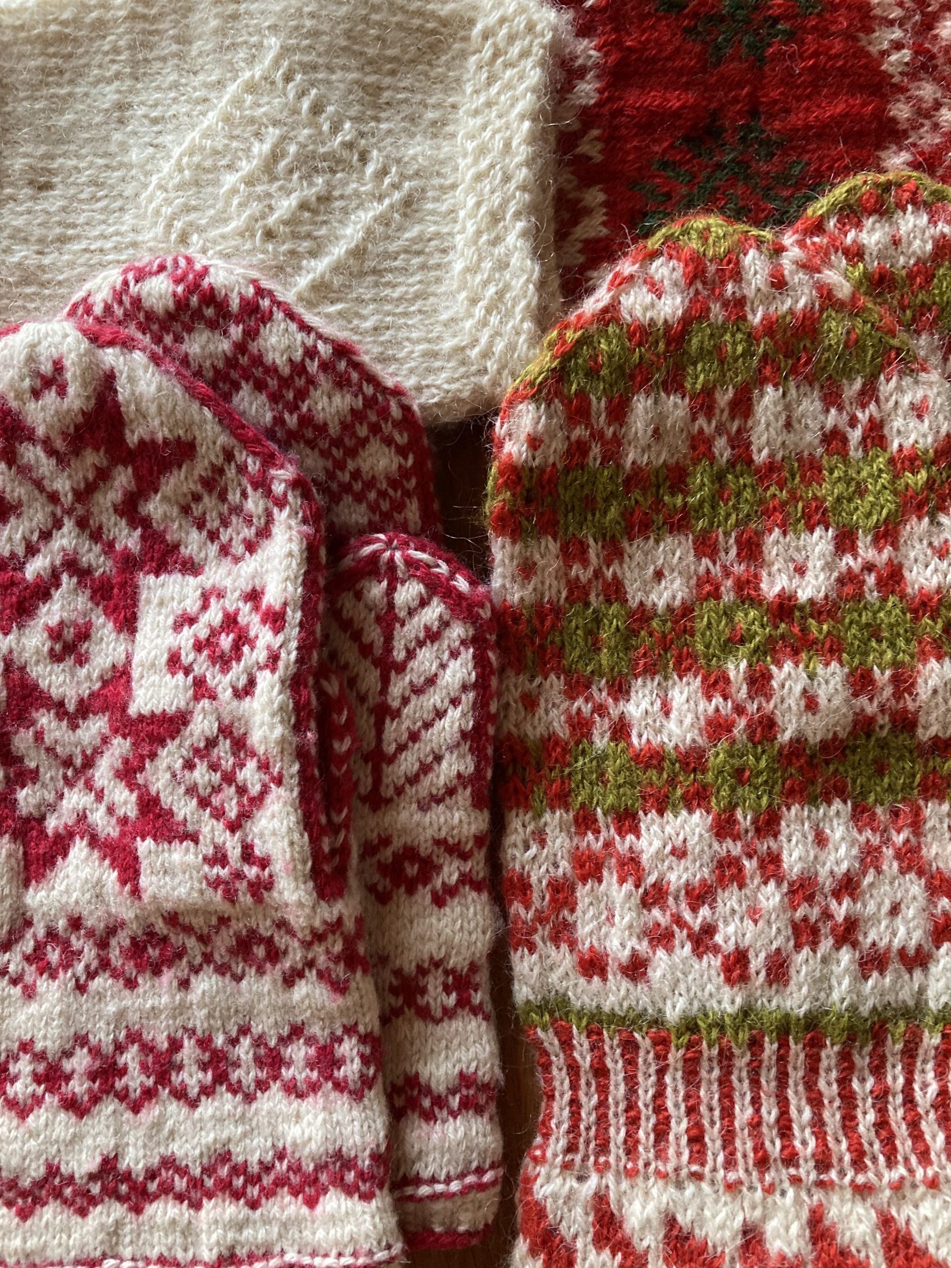 後半には伝統模様のスワッチを編むミニワークを予定しています。数年前の展示会用に編んだ手袋付きセーターの編み地も、実はスウェーデンの伝統模様のひとつです。模様を作品にどのように生かすか、そんなお話もしたいですね。