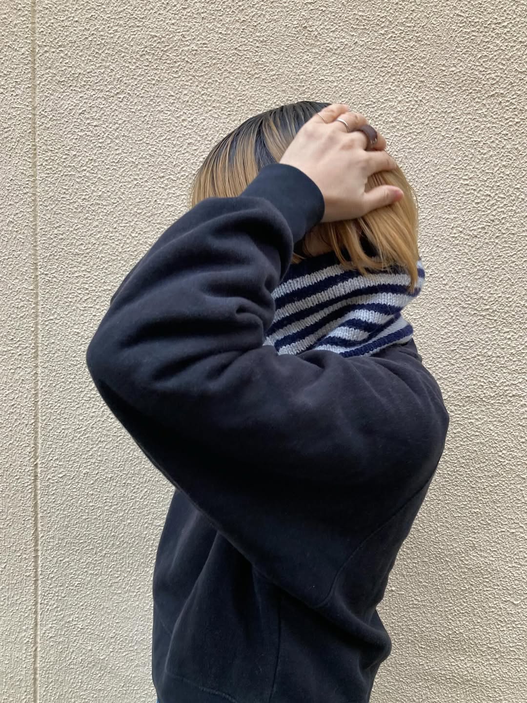 全くチクチクしない、柔らかな色違いの糸を2本引き揃えて編むネックウォーマーです。