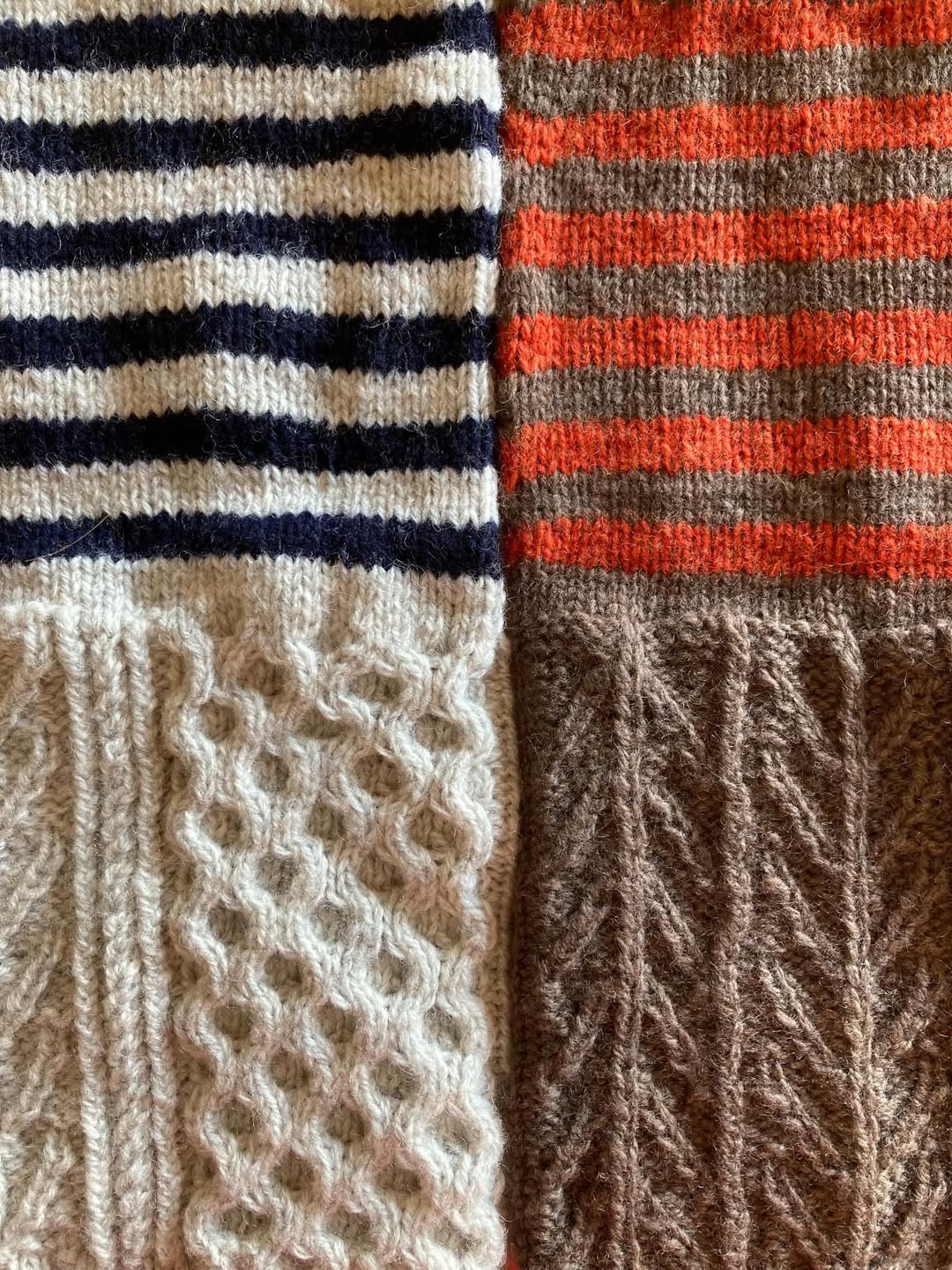 2種類の縄編みを交互に編みますので、縄編みの練習に最適です。
